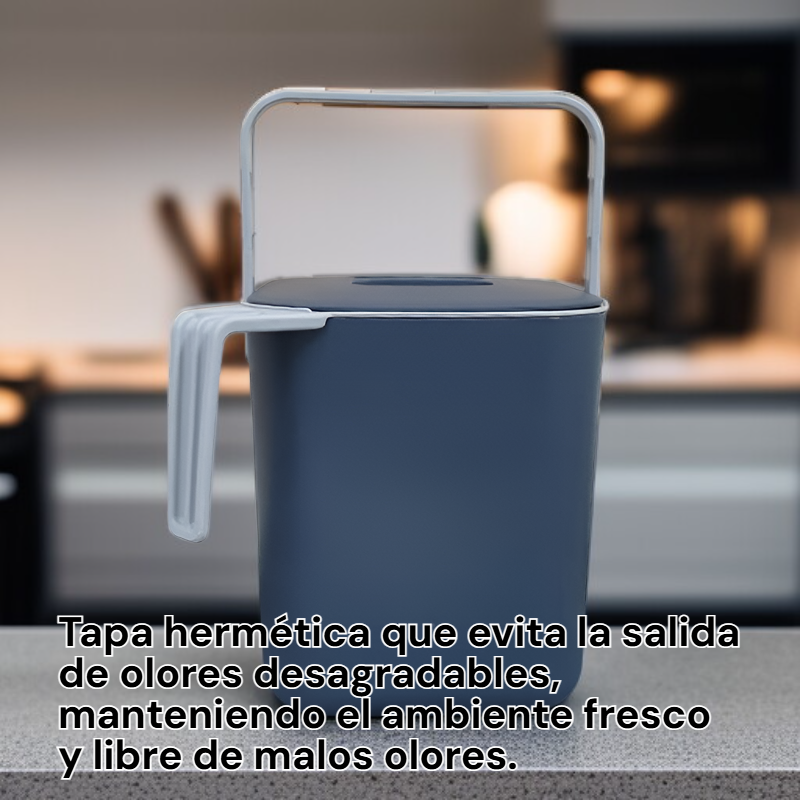 ● Diseño ligero y ergonómico con asa, facilita el transporte y manejo diario de residuos orgánicos en la cocina. ● Gran capacidad de 4 litros, ideal para familias, permite almacenar más desechos sin necesidad de vaciarlo constantemente. ● Material resistente y fácil de limpiar, asegura una larga vida útil y mantiene la higiene en tu hogar. ● Tapa hermética que evita la salida de olores desagradables, manteniendo el ambiente fresco y libre de malos olores. ● Perfecto para separar y recolectar residuos alimenticios, contribuyendo al reciclaje y cuidado del medio ambiente.